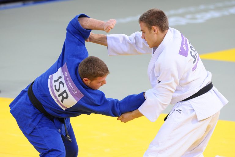 Rød sirkel med JudoMania-ordmerke tegnet i vektorstier
